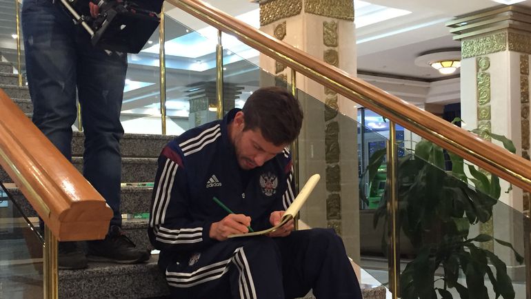 Футболисты сборной России по прибытии в Ростов-на-Дону на товарищеский матч против Хорватии попробовали нарисовать талисман чемпионата мира 2018 года, передает корреспондент "СЭ" Михаил ГОНЧАРОВ. Так, нападающий "Краснодара" Федор Смолов, полузащитник "Спартака" Денис Глушаков и хавбек "Локомотива" Александр Самедов продемонстрировали свои опусы. Напомним, что созданием талисмана занимаются студенты творческих вузов России. Прием заявок будет осуществляться до 30 ноября.
