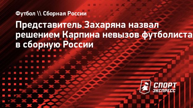 Представитель Захаряна о невызове в сборную: «Это решение Карпина»