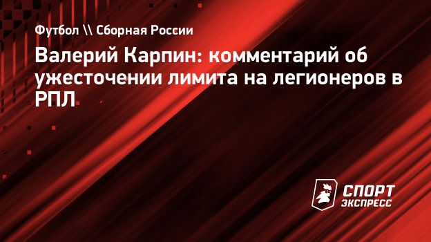 Главный тренер сборной России Валерий Карпин прокомментировал возможное ужесточение лимита на легионеров в РПЛ.