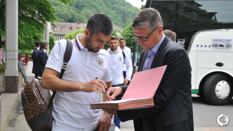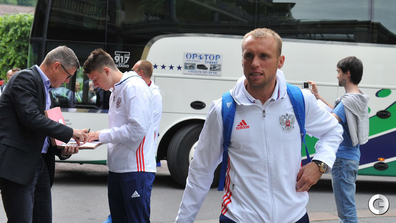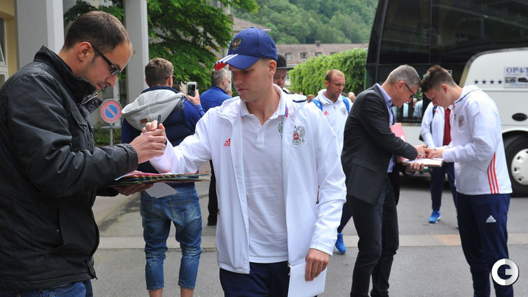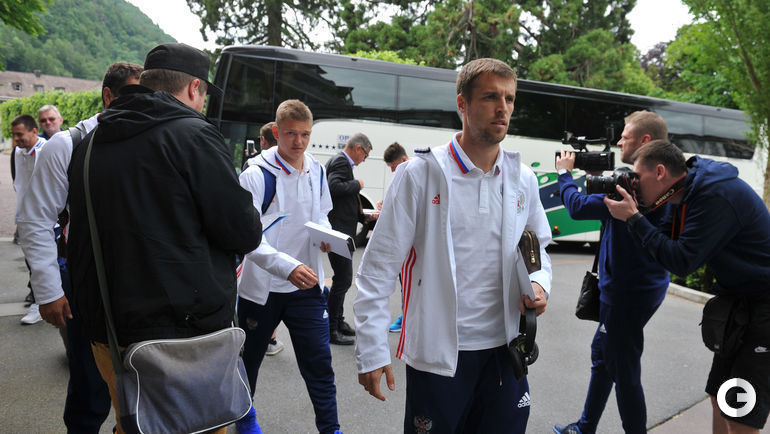 Сборная России прибыла в швейцарский Бад-Рагац и заселилась в отель, где проведет подготовку к чемпионату Европы-2016 с 24 по 5 июня.