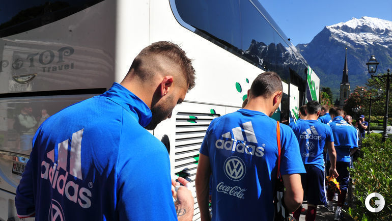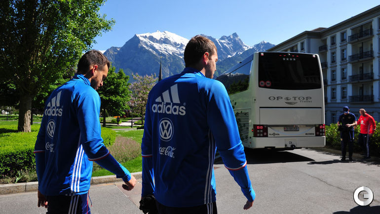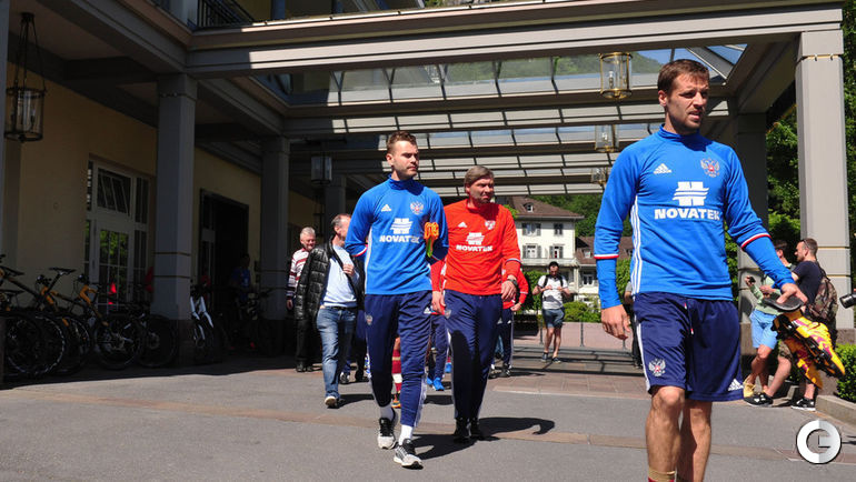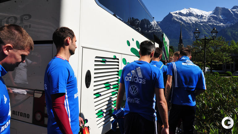 Сборная России в Швейцарии продолжает подготовку к чемпионату Европы. Спецкор "СЭ" Александр ФЕДОРОВ запечатлел отъезд команды Леонида Слуцкого на тренировку. Примечательно, что на занятие футболисты поехали на автобусе, а не на велосипедах, как это анонсировалось накануне.