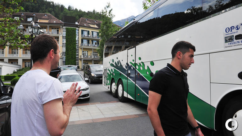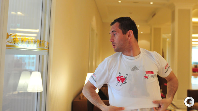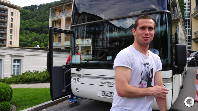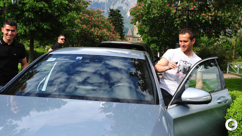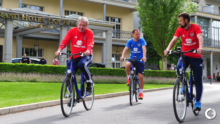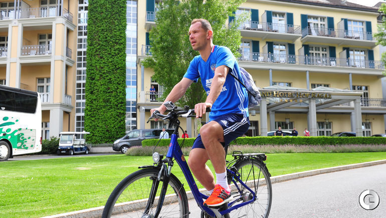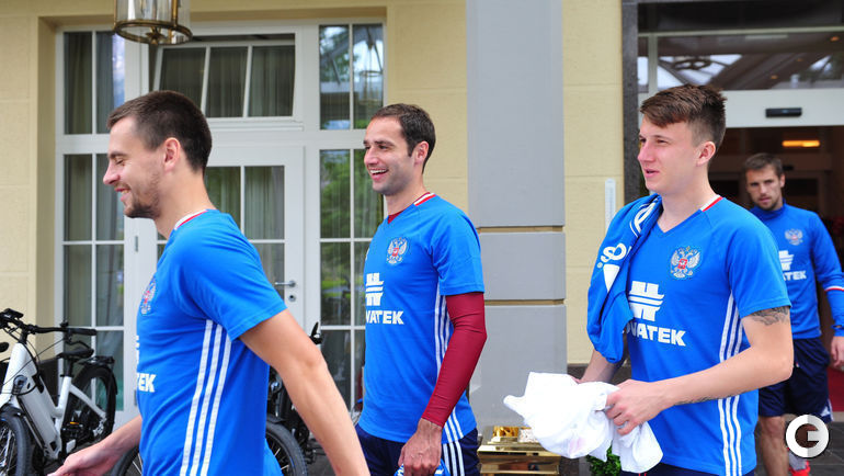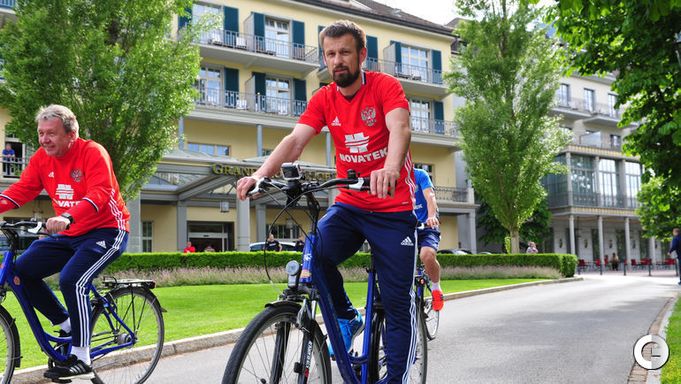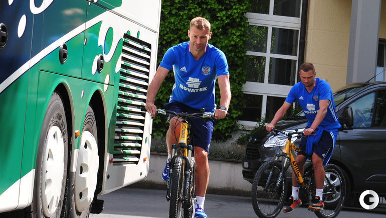 Перед вечерней тренировкой сборной России в Бад-Рагаце, где подопечные Леонида Слуцкого готовятся к чемпионату Европы, расположение команды посетил ее лучший бомбардир Александр Кержаков.