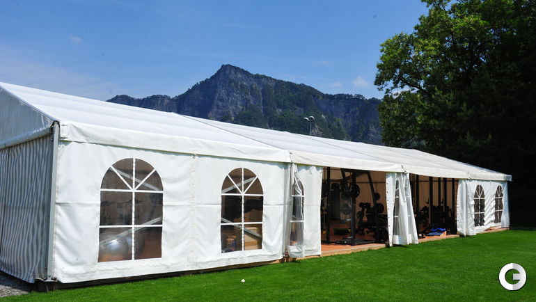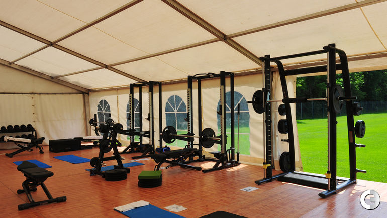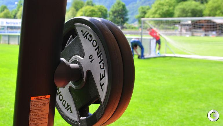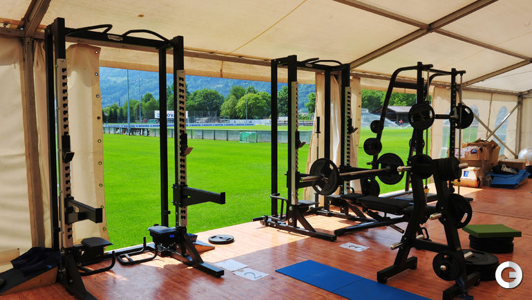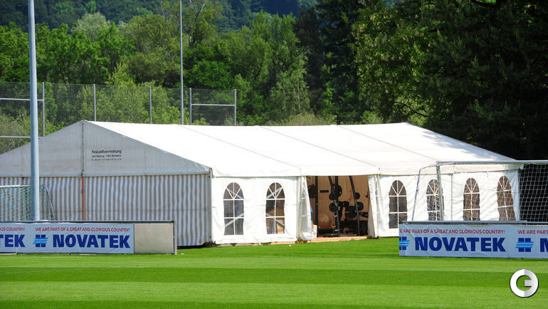 Для команды Леонида Слуцкого на сборе в швейцарском Бад-Рагаце оборудовано сразу два тренажерных зала. Один находится прямо в отеле, второй – в шатре возле поля тренировочного центра Ri-Au. Вообще-то обычно путь туда закрыт для журналистов, но нам удалось попасть "за кулису" тренажерки.