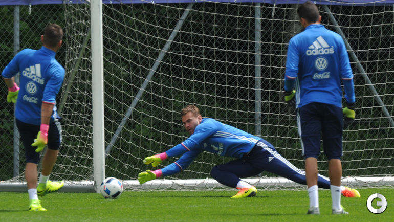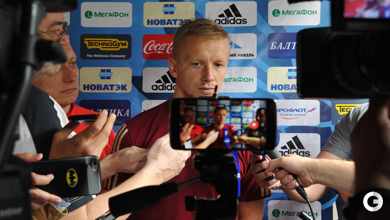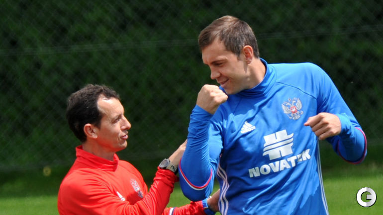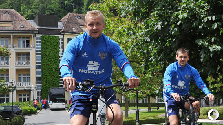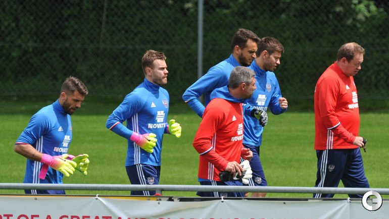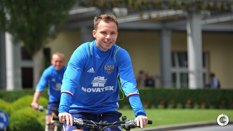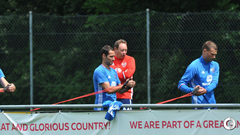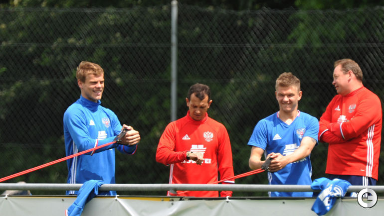 Полузащитник сборной России Роман Широков тренируется в общей группе.