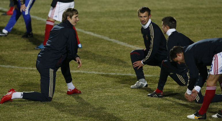 Сборная России под руководством Гуса Хиддинка провела тренировку в Венгрии накануне товарищеского матча с национальной командой этой страны. Фото - Александр ФЕДОРОВ, "СЭ"
