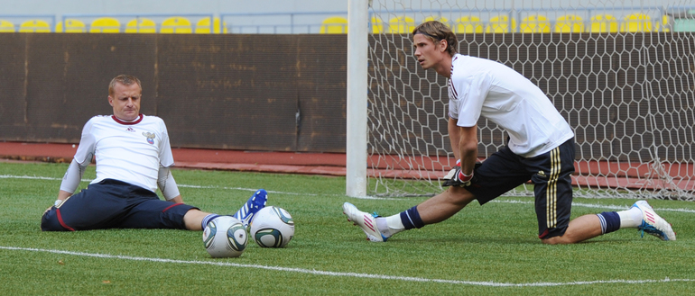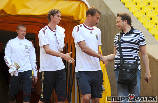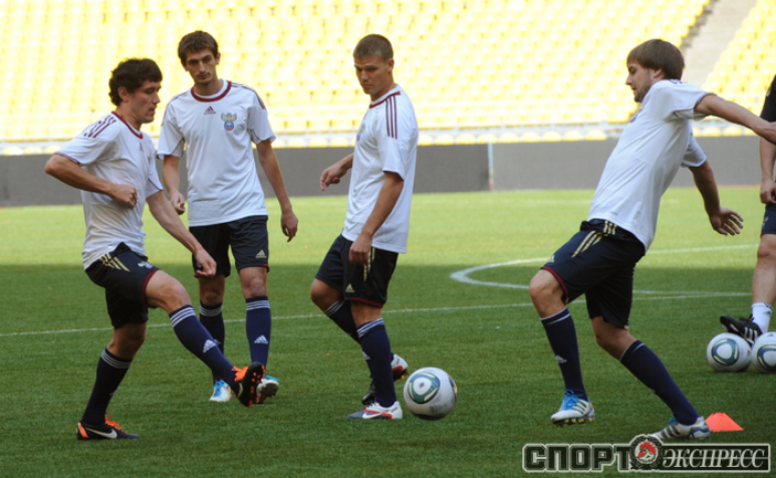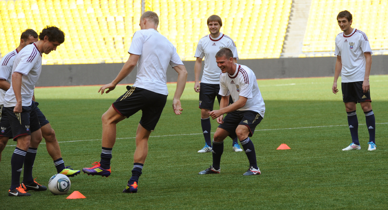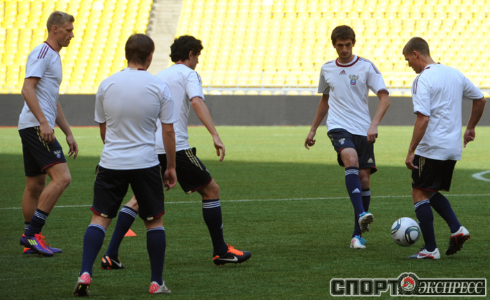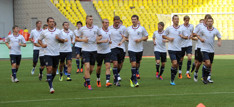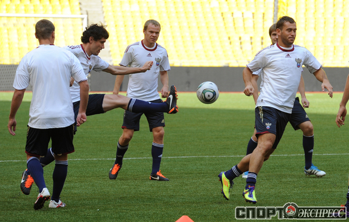 Футбол. Москва. Лужники. Тренировка сборной России перед отборочным матчем Россия - Македония. Фото - Татьяны Дорогутиной, "СЭ"