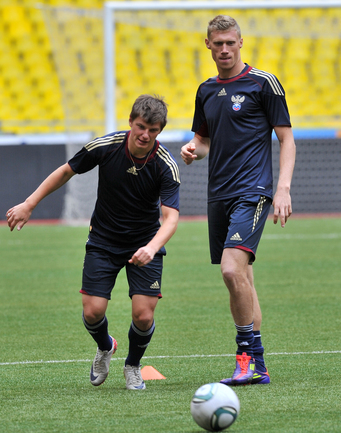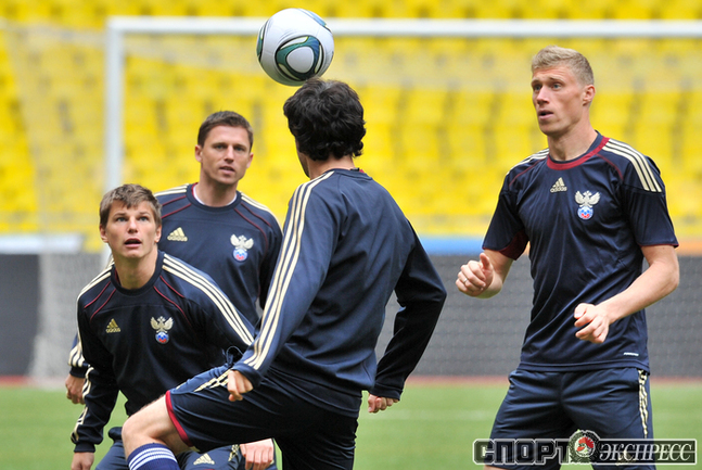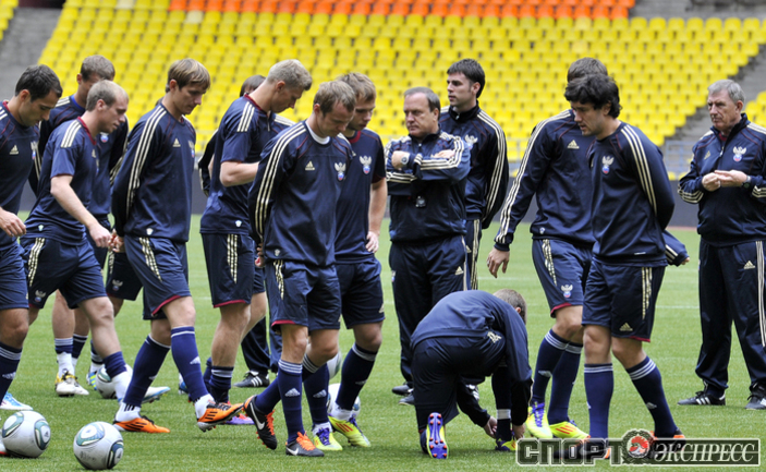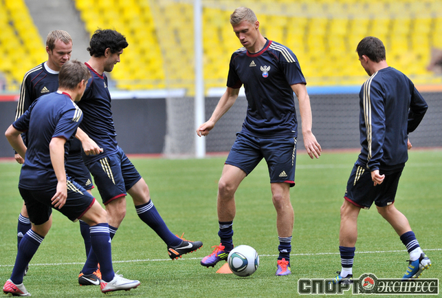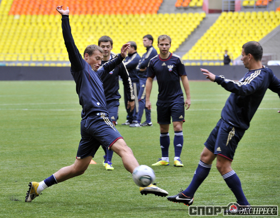 Сборная России по футболу на стадионе в Лужниках готовится к отборочному матчу ЕВРО-2012 против национальной команды Ирландии. Фото - Алексей ИВАНОВ, "СЭ"