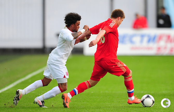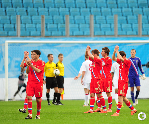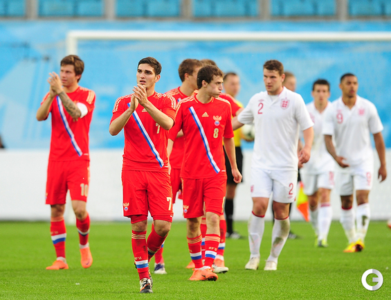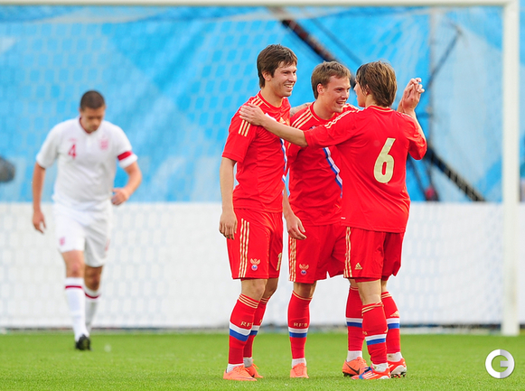 РОССИЯ(мол.) - Англия С - 4:0 (2:0). Голы: Делькин, 26 (1:0). Бибилов, 43 (2:0). Делькин, 54 (3:0). Смолов, 82 - с пенальти (4:0).Россия (мол.): Фильцов, Чичерин, Бурлак (Логашов, 46), Беляев (Жестоков, 80), Щенников (Князев, 46), Оздоев, Бибилов, Петров (Шатов, 58), Хубулов (Канунников, 58), Смолов, Делькин.Англия C: Хедж (Макдоналд, 77), Эйндж, Браун, Гарнер, Форбс (Дэвис 73), Маколи, Мейкл (Оуэнс, 77), Винсент, Грэй, Уилсон (Броган, 46), Джонсон (Коулсон, 58). Фото Антона СЕРГИЕНКО, "СЭ Интернет"