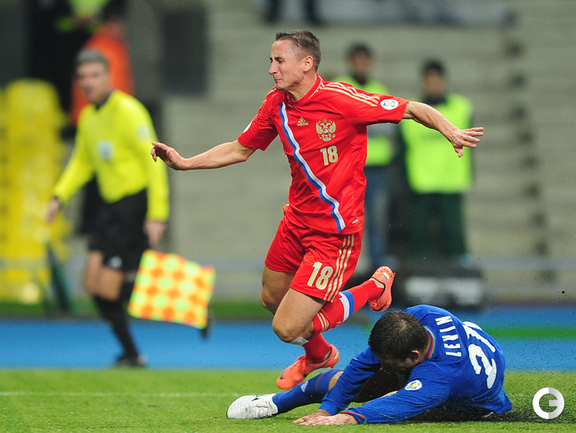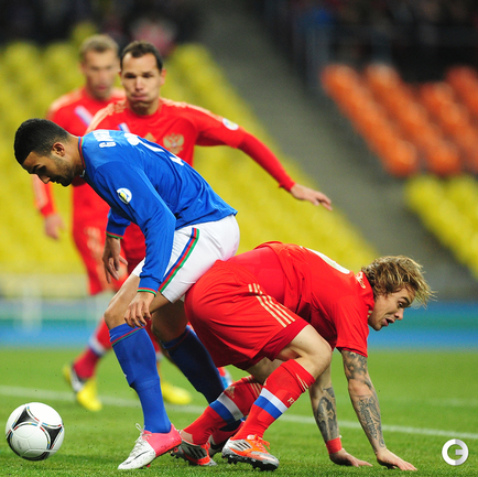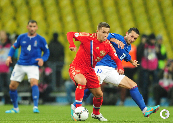 16.10.2012 года. Москва. БСА "Лужники". Россия- Азербайджан- 1:0. Гол(пен) Широков '84. Фото- Антона СЕРГИЕНКО, "СЭ ИНТЕРНЕТ"