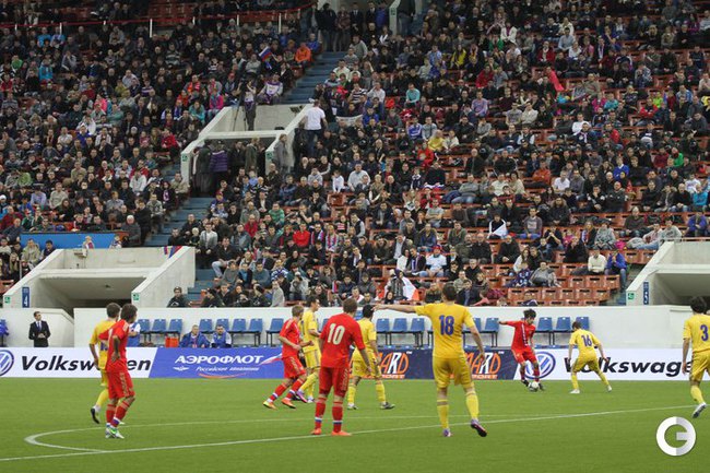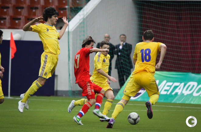 Футбол. Санкт-Петербург. Кубок Содружества. Молодежные сборные. Финал. РОССИЯ - Украина - 4:2 (2:1). Голы: Иашвили, 5 - в свои ворота (1:0). Калитвинцев, 14 (1:1). Панюков, 38 (2:1). Иванко, 64 (2:2). Панюков, 75 (3:2). Махмудов, 90+5 - с пенальти (4:2). Россия: Лобанцев, Никитин, Голубев, Семенов, Зуев, Обухов (Махмудов, 65), Каюмов (Амбарцумян, 79), Митришев (Васильев, 88), Бочаров, Ламбарский, Панюков. Удаление: Шевченко (Украина), 90+3. Фото - Кристина Коровникова
