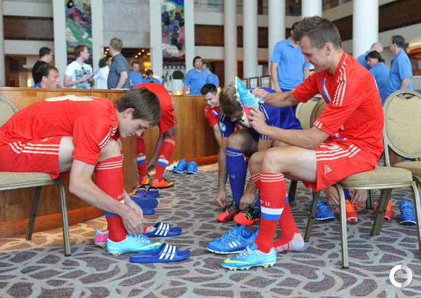 Футболисты молодежной сборной России на фотосессии в израильском отеле