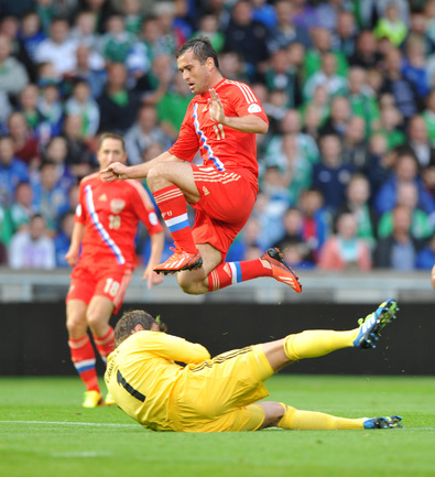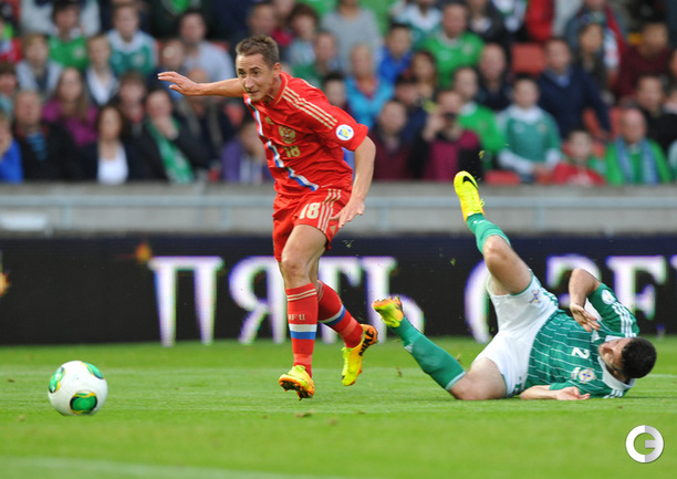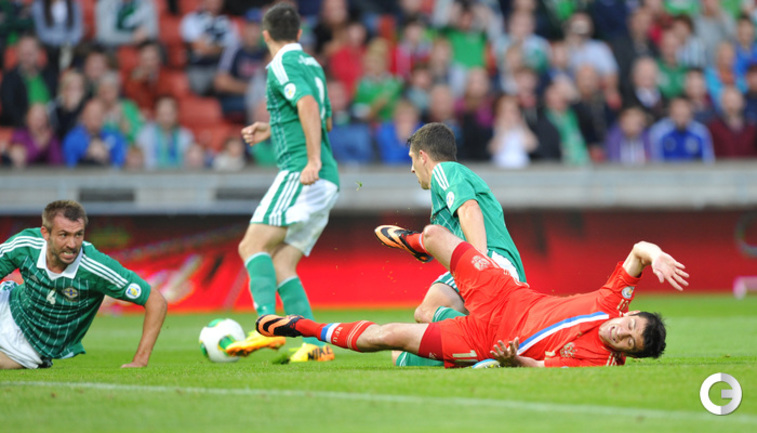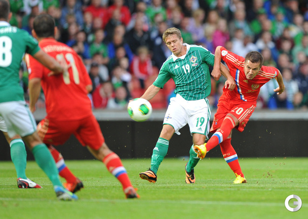 Футбол. 14 августа 2013 года. Белфаст. Отборочный матч к Чемпионату мира - 2014. Группа "F". Стадион "Windsor Park". СЕВЕРНАЯ ИРЛАНДИЯ - РОССИЯ - 1:0 (1:0), Гол: Патерсон 48-мин. 1:0. Фото - Александр ФЕДОРОВ "СЭ".