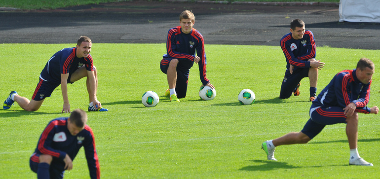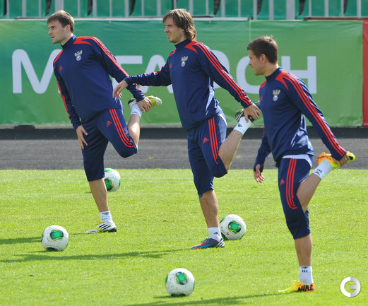 Сборная России по футболу на стадионе имени Эдуарда Стрельцова в Москве продолжает подготовку к матчам отборочного турнира ЧМ-2014 против национальных команд Люксембурга и Израиля. Фото - Александр ФЕДОРОВ, "СЭ"