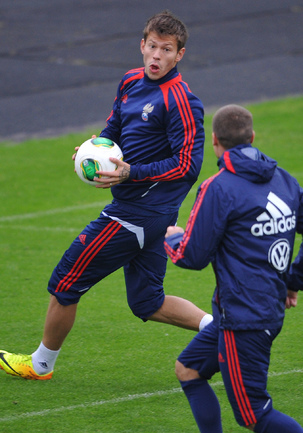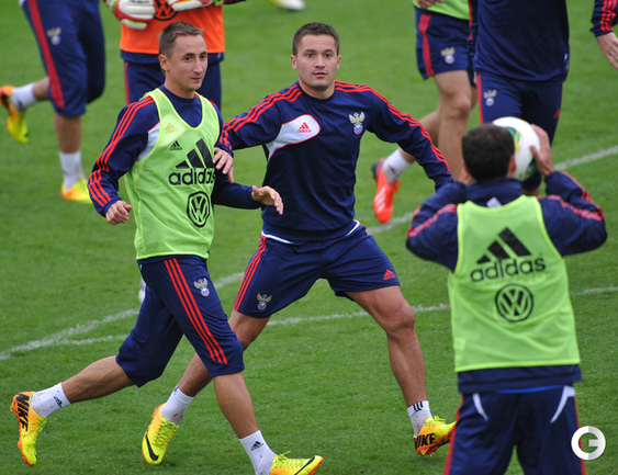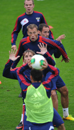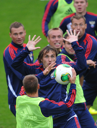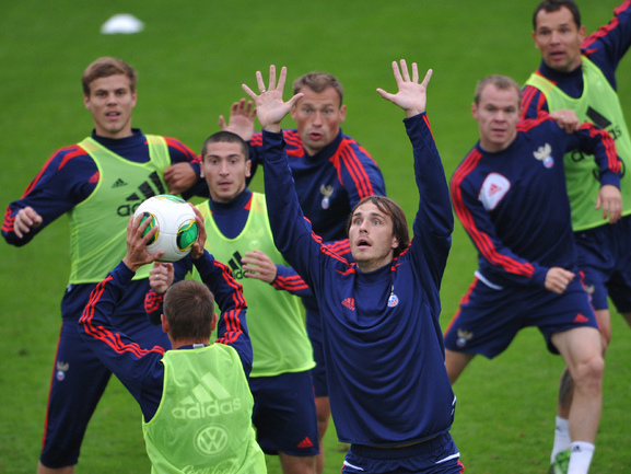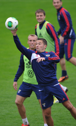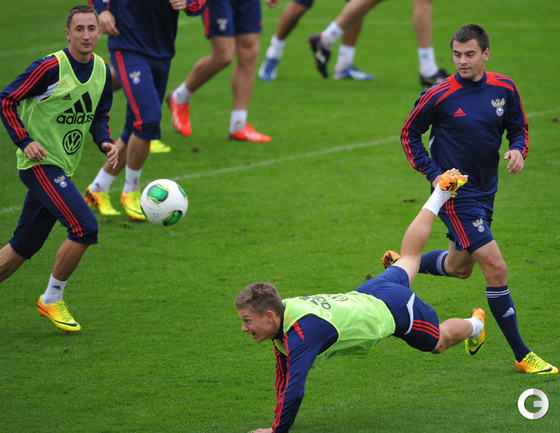 Сборная России по футболу на стадионе имени Эдуарда Стрельцова в Москве продолжает подготовку к матчам отборочного турнира ЧМ-2014 против национальных команд Люксембурга и Израиля. Фото - Александр ФЕДОРОВ, "СЭ"