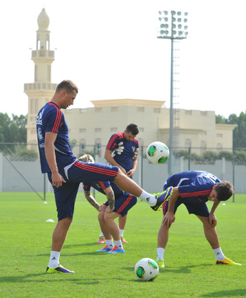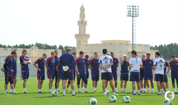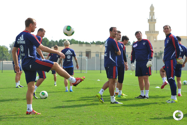 Специальный фотокорреспондент "СЭ" Александр Федоров побывал на утренней тренировке сборной России в ОАЭ.