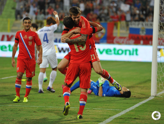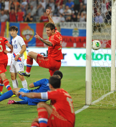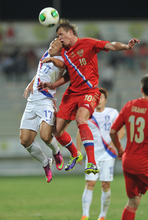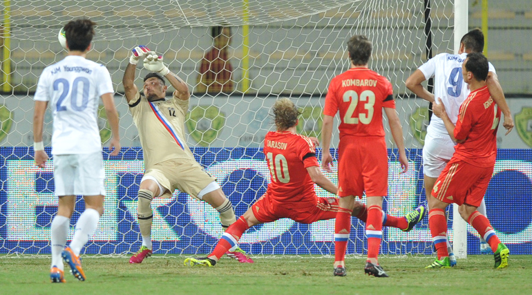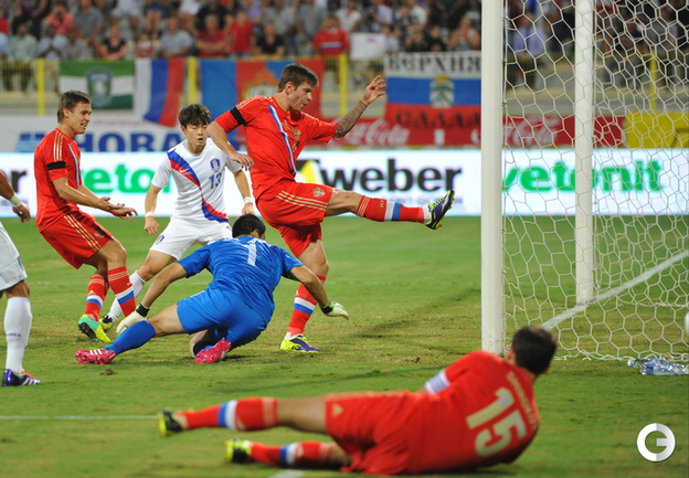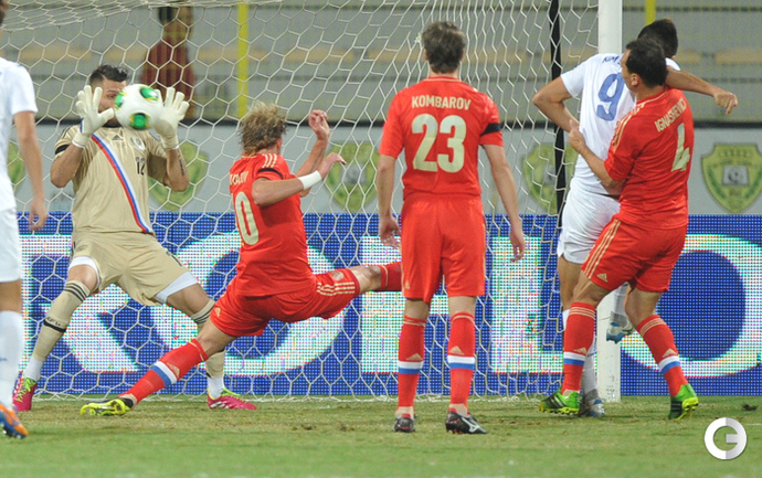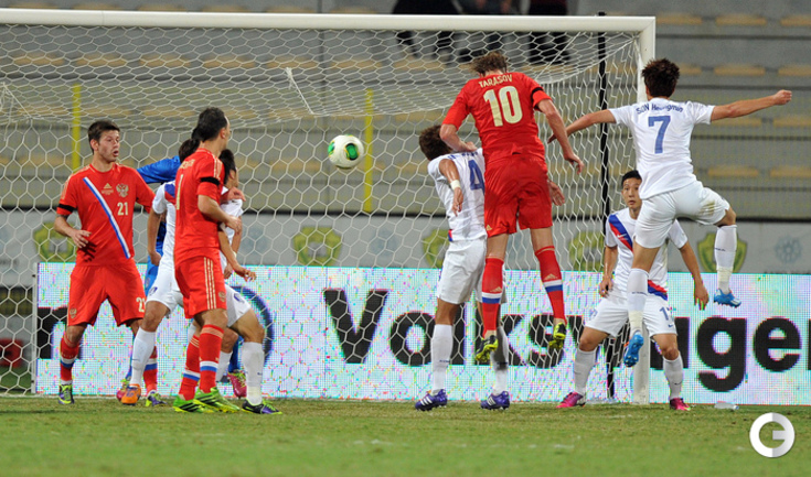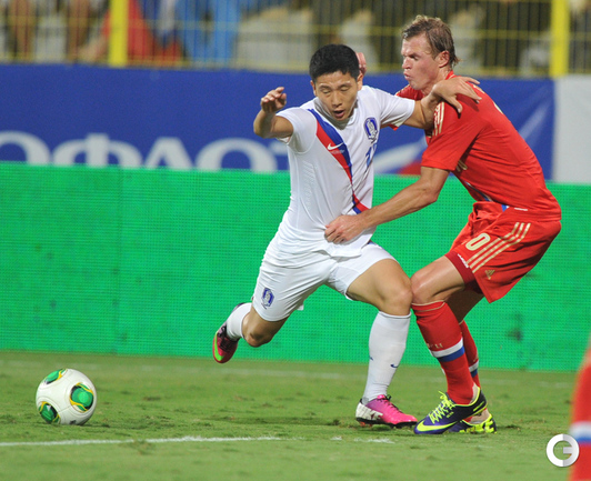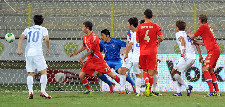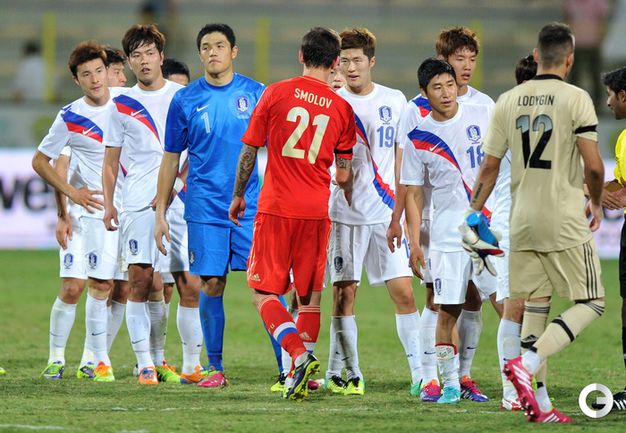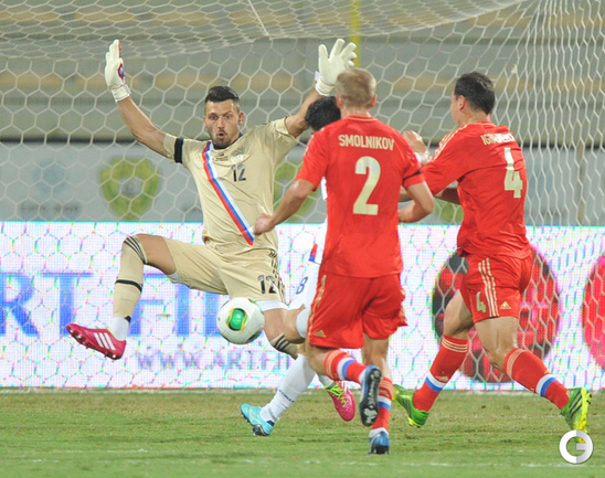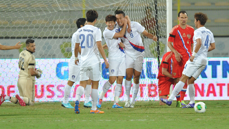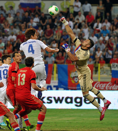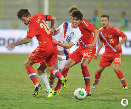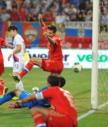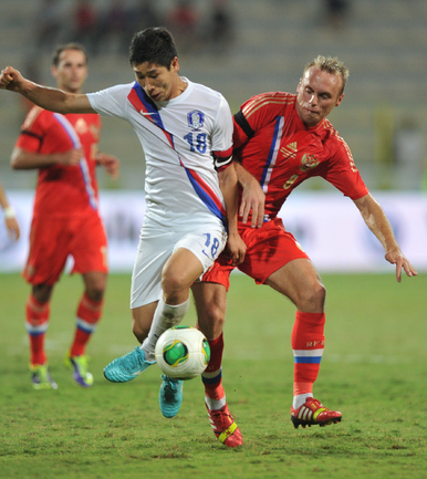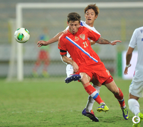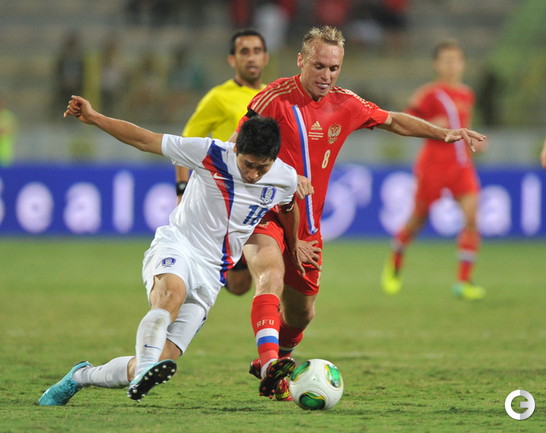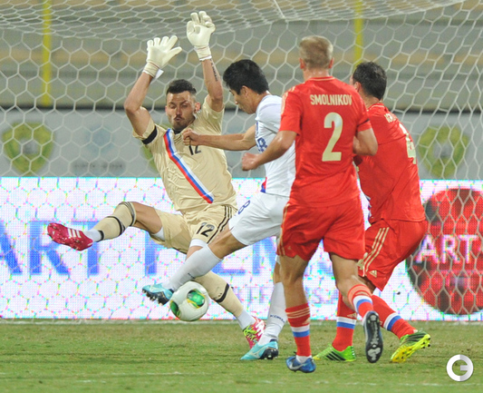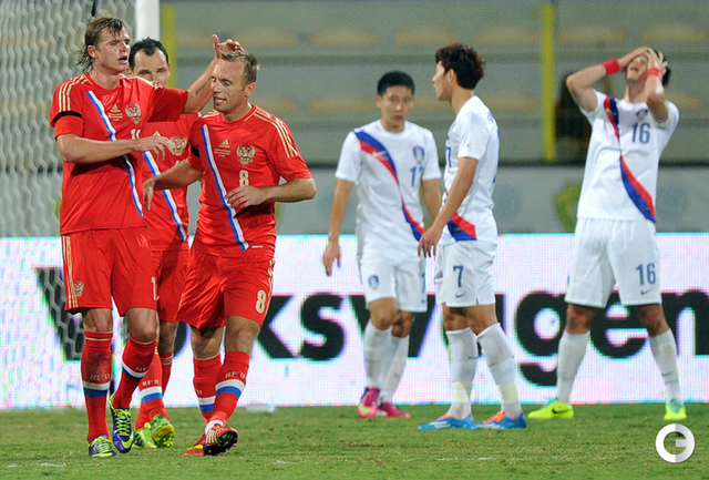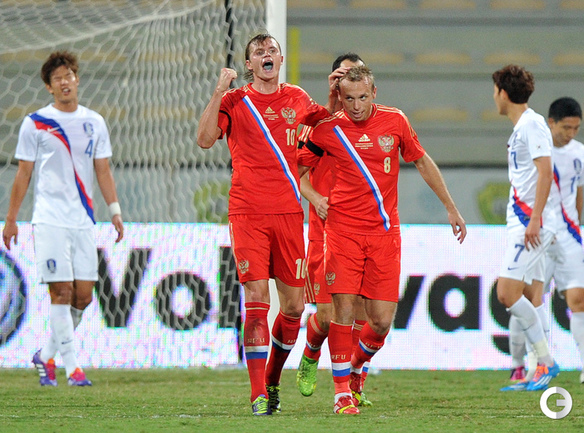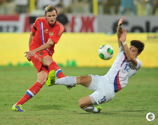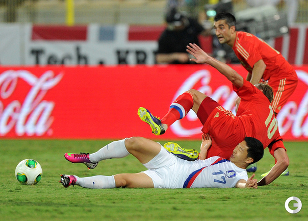 Футбол. Дубай. Товарищеский матч. РОССИЯ – Корея – 2:1 (1:1). Голы: Ким Син Ук, 6 (0:1). Смолов, 12 (1:1). Тарасов, 60 (2:1). Матчем со сборной Кореи 18 июня 2014 года в бразильском Куябе российская команда начнет выступление на чемпионате мира в Бразилии. Фото - Александр ФЕДОРОВ, "СЭ"