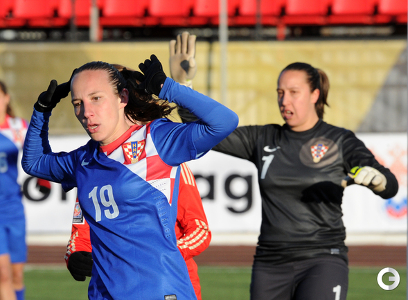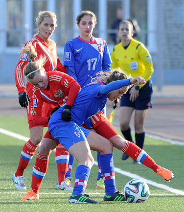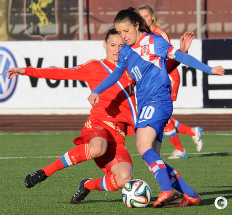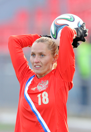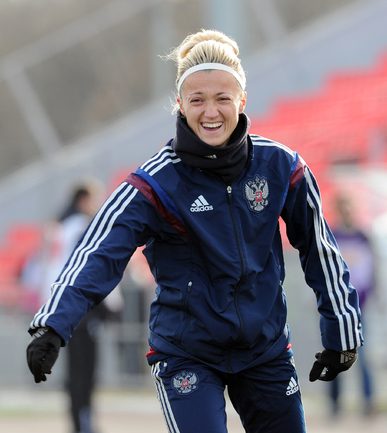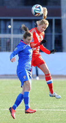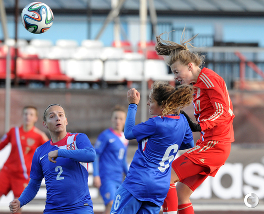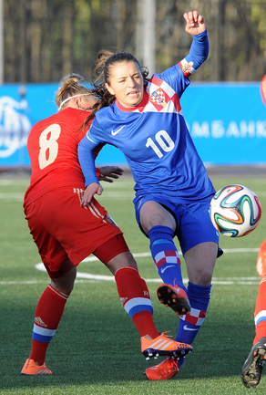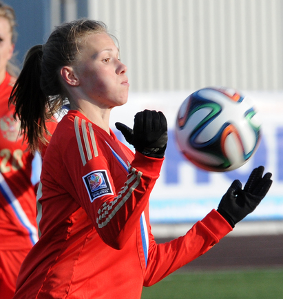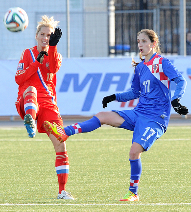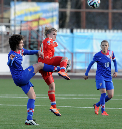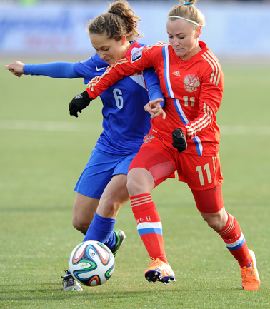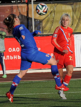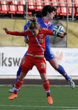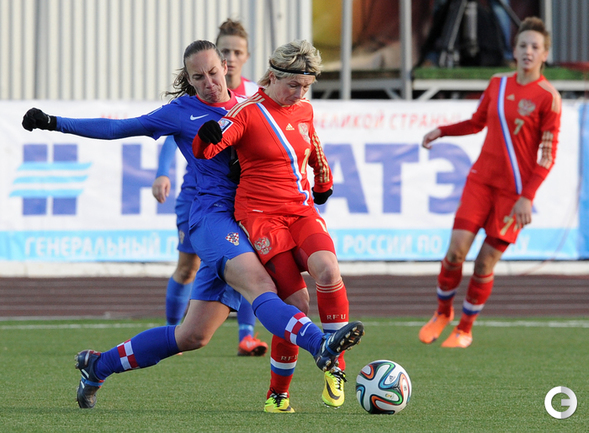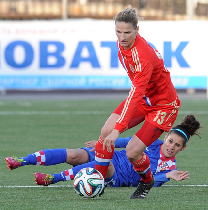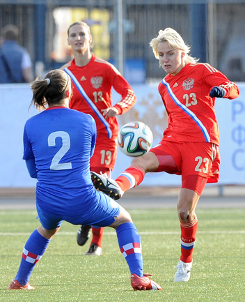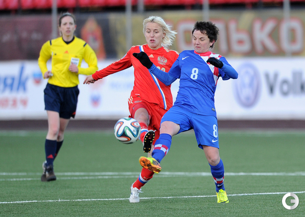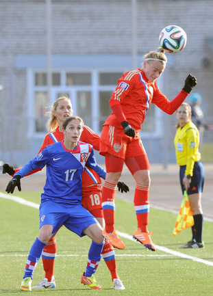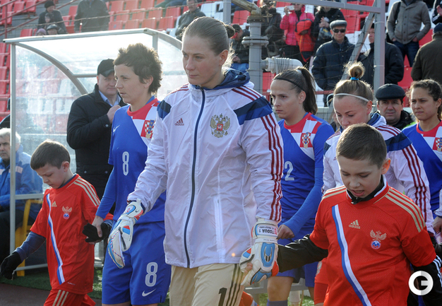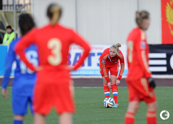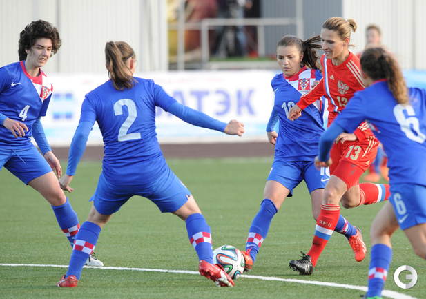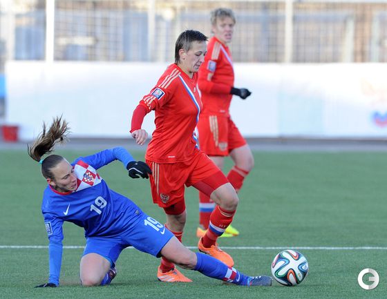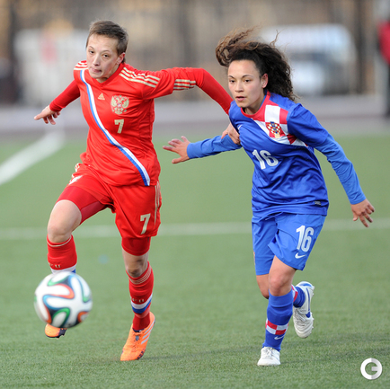 Футбол. Москва. Стадион "Родина". Отборочный матч Чемпионата Мира по футболу 2015. Женщины. Россия - Хорватия - 1:0. Гол: Пантюхина, 9 (1:0). Россия: Тодуа, Медведь, Цыбутович (к), Орлова, Дмитренко, Терехова, Сочнева (Петрова, 46), Сидоровская, Пантюхина, Коровкина (Савченкова, 46), Морозова, Медведь. Фото - Никита УСПЕНСКИЙ, "СЭ"