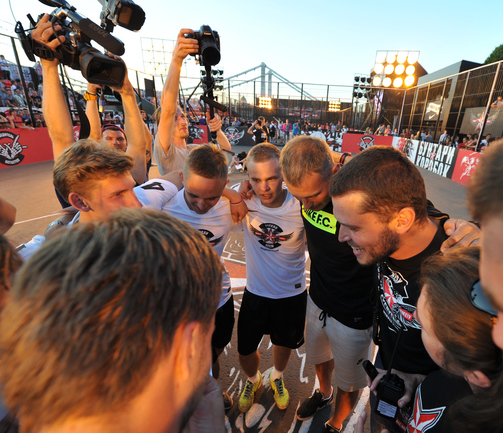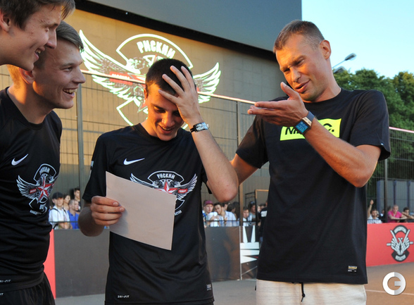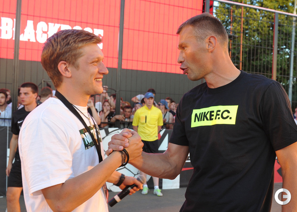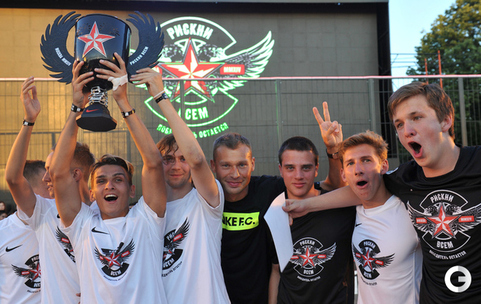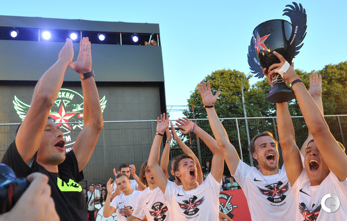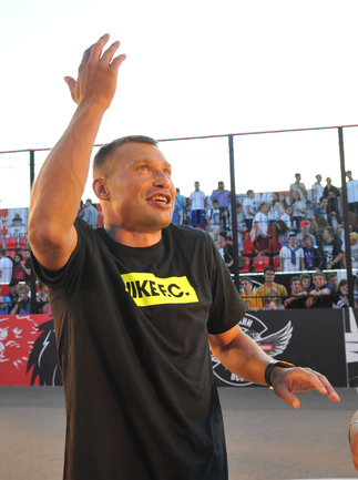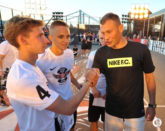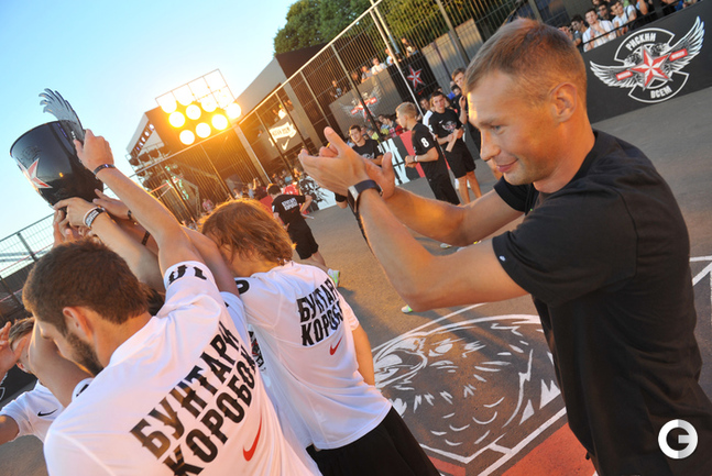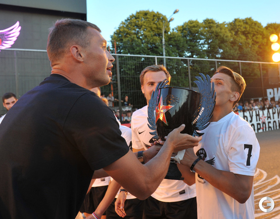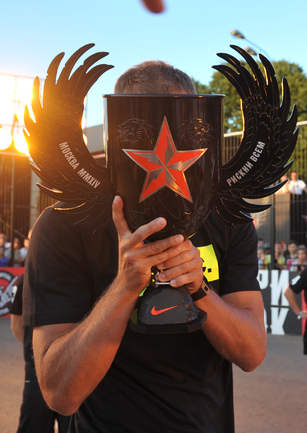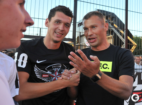 Футбол. Москва. ЦПКиО им. Горького. Василий Березуцкий наградил победителей футбольного турнира . Фото - Александр Федоров, "СЭ"