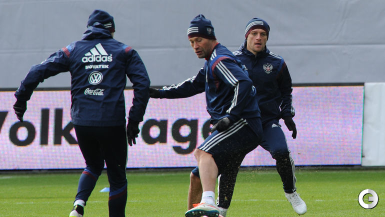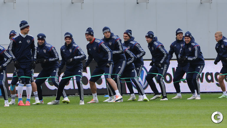 Сборная России готовится к матчу с Черногорией без Денисова и Шатова