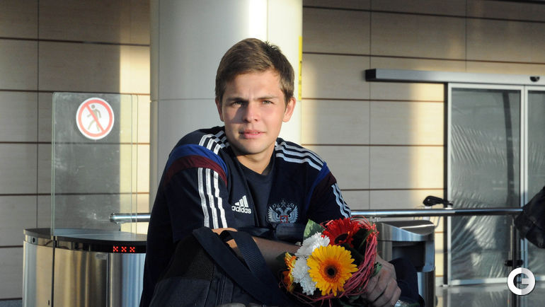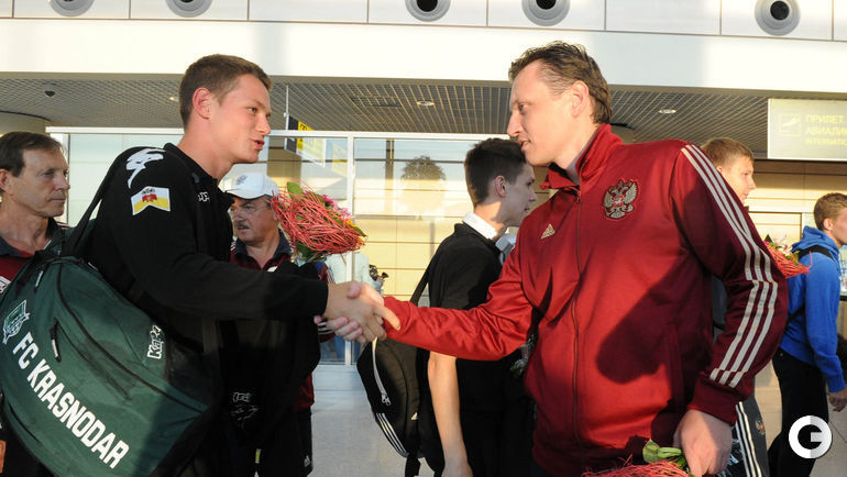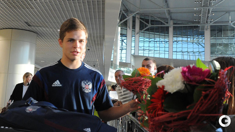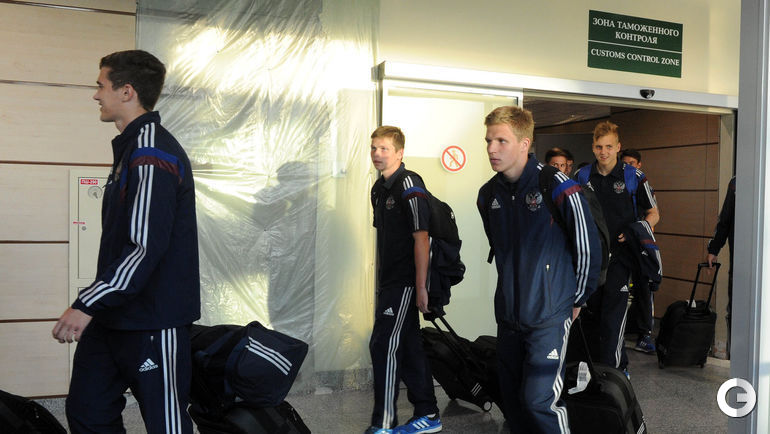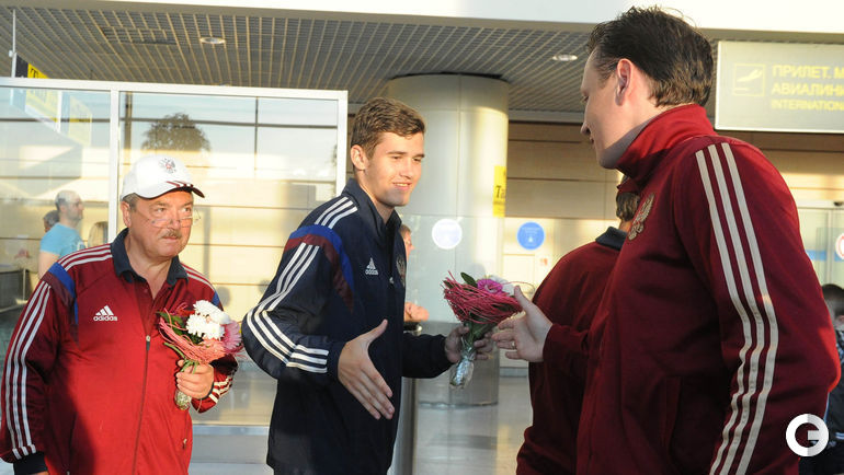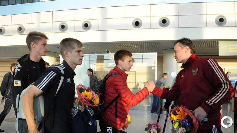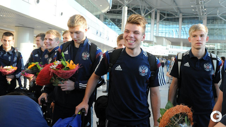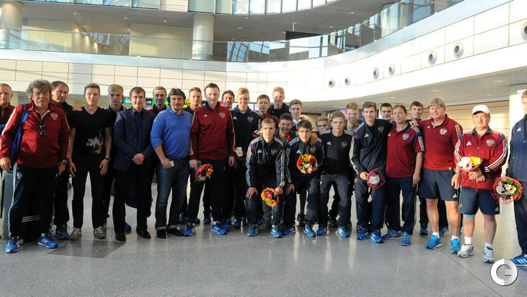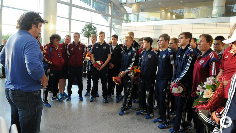 Юношеская сборная России до 17 лет прибыла в московский аэропорт Домодедово из Болгарии. Команду встретил генеральный директор РФС Александр Алаев и спортивный директор РФС Николай Писарев. На Euro-2015 юноши заняли третье место. Фото Никита УСПЕНСКИЙ, "СЭ"