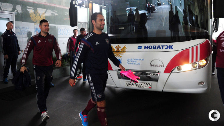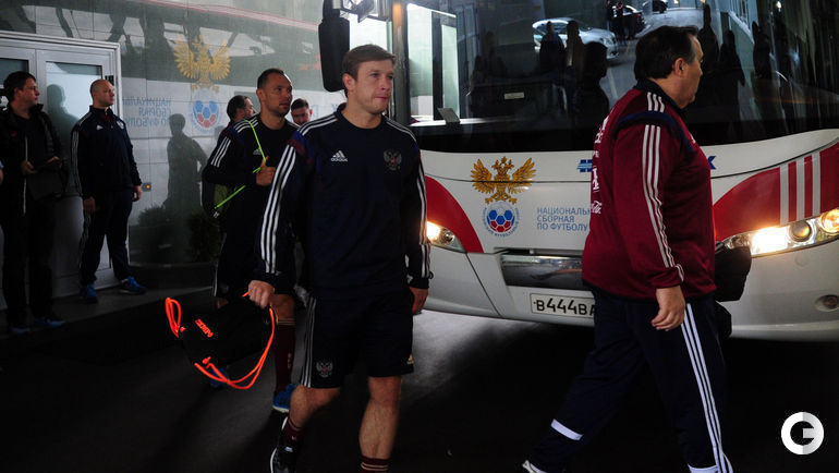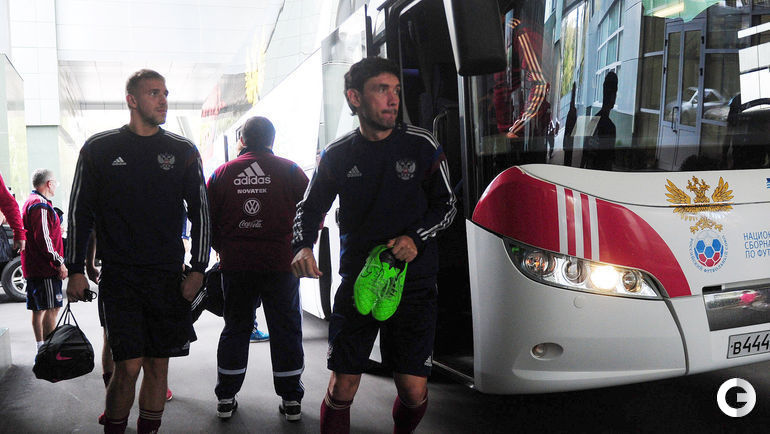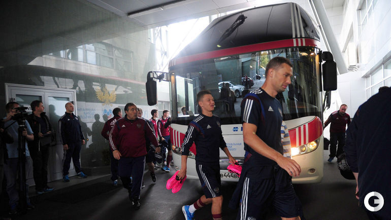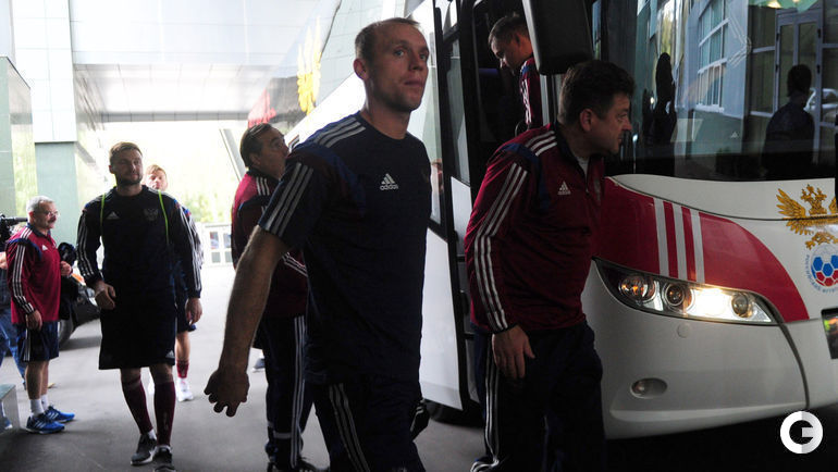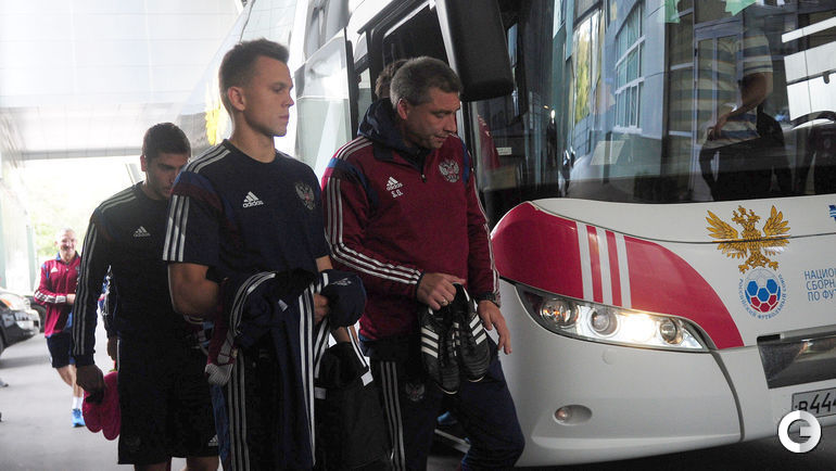 Сборная России приехала на первую тренировку под руководством Леонида Слуцкого. Фото Федор УСПЕНСКИЙ, "СЭ"