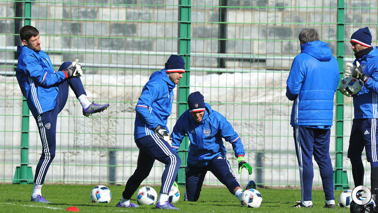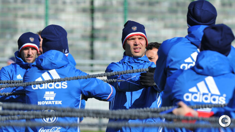 Сборная России по футболу провела первую тренировку в ходе подготовки к товарищеским матчам со сборными Литвы и Франции. Нападающий швейцарского "Цюриха" Александр КЕРЖАКОВ вместе с армейцем Аланом ДЗАГОЕВЫМ тренировался по индивидуальной программе. Главный тренер команды Леонид СЛУЦКИЙ сообщил журналистам, что ясность в вопросе, сможет ли Кержаков принять участие в одном из двух мартовских игр, наступит 25 марта.