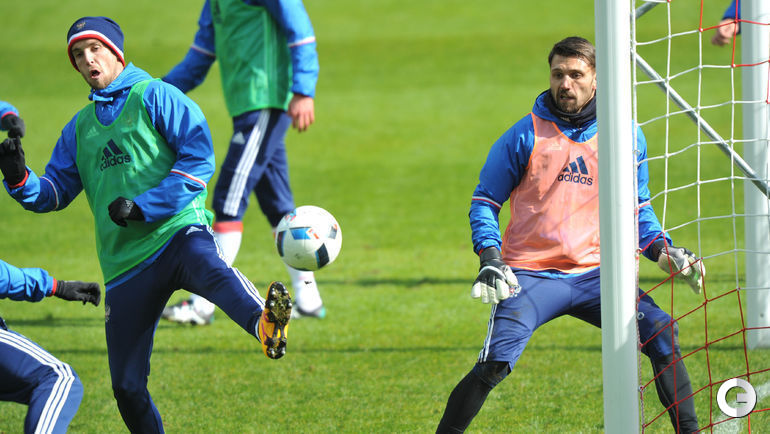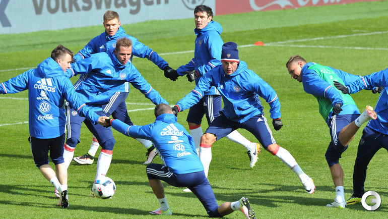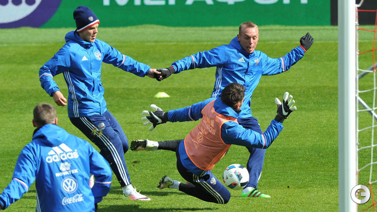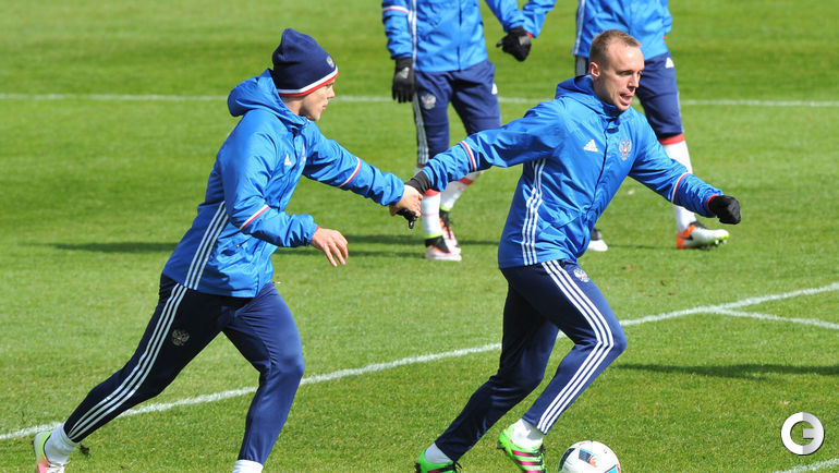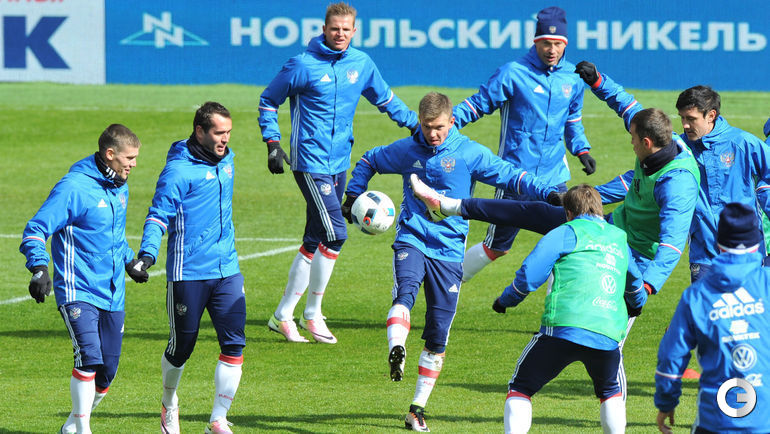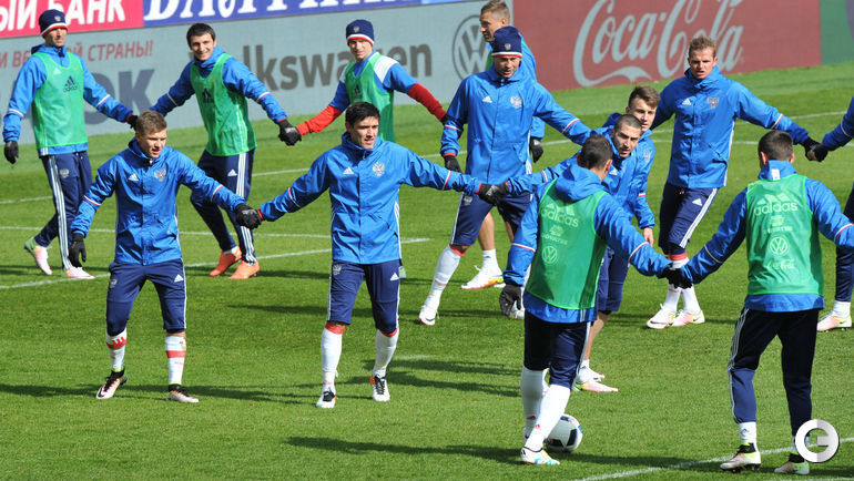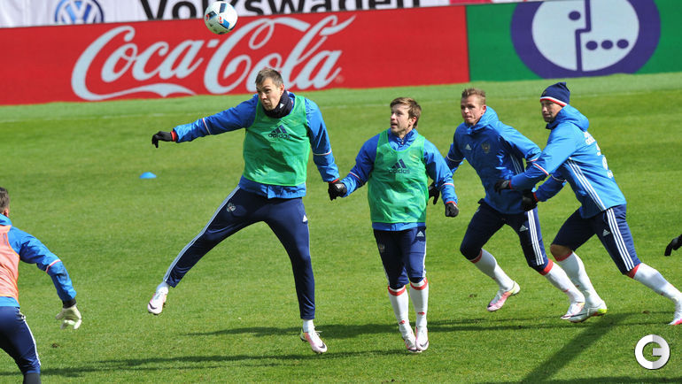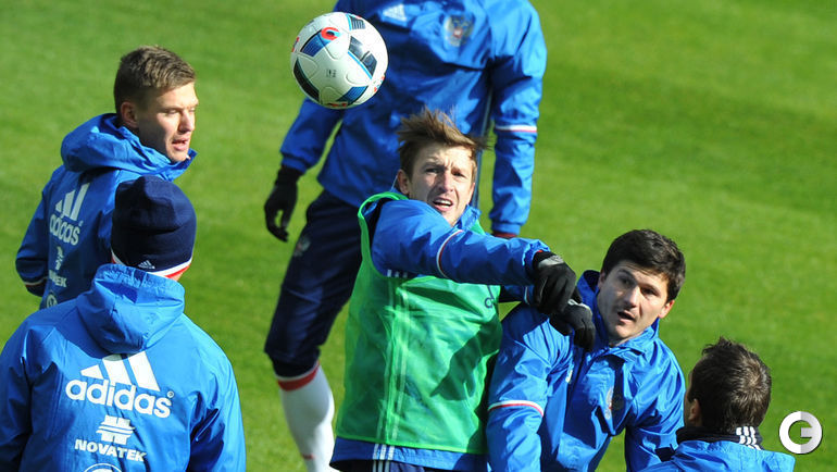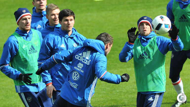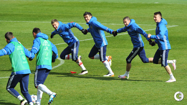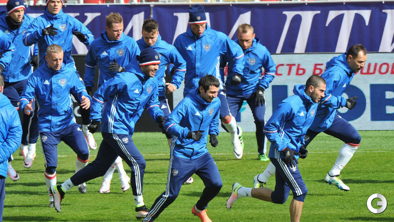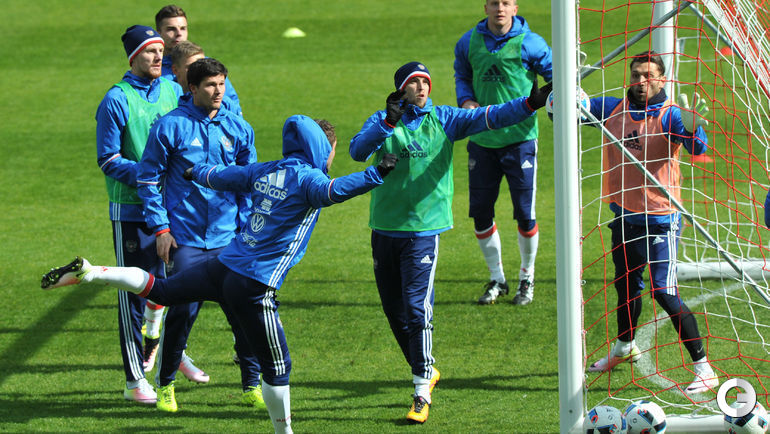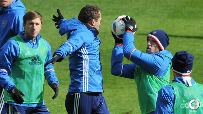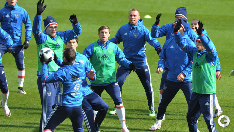 Сборная России провела тренировку в преддверии товарищеских матчей с Литвой и Францией. Завтра команда Слуцкого примет литовцев на московской "Открытие Арене", а в воскресенье вылетит в Париж. Фото Александр ФЕДОРОВ, "СЭ"