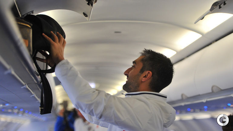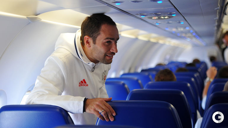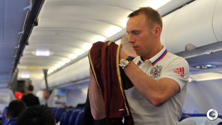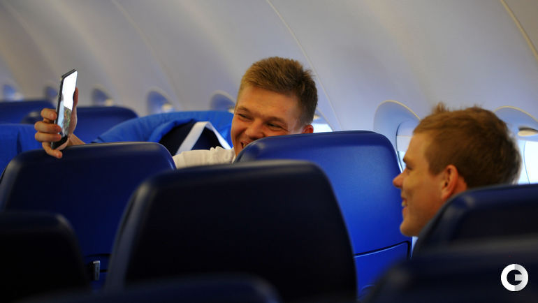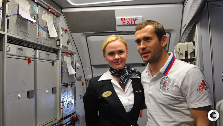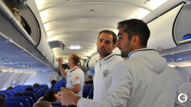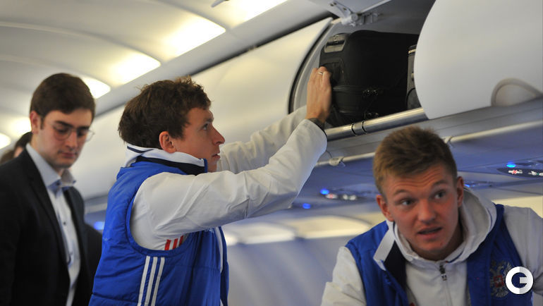 Сборная России прилетела в Париж, где во вторник проведет товарищеский матч со сборной Франции. Репортаж специального фотокорреспондента "СЭ" Александра ФЕДОРОВ из самолета национальной команды.