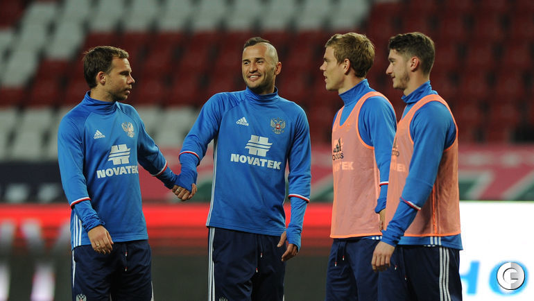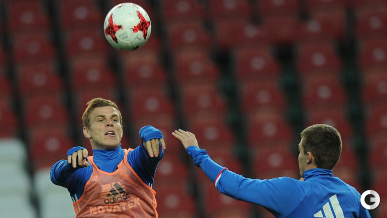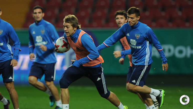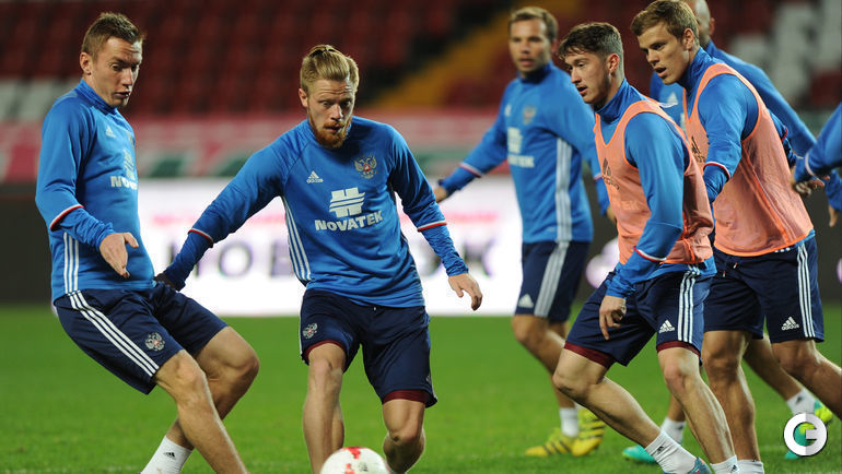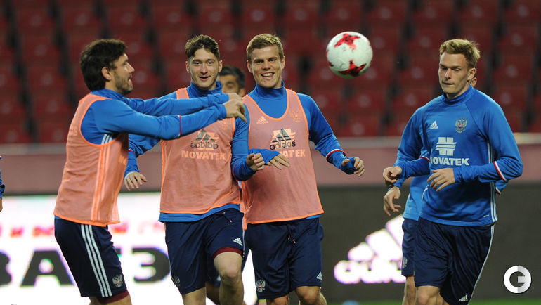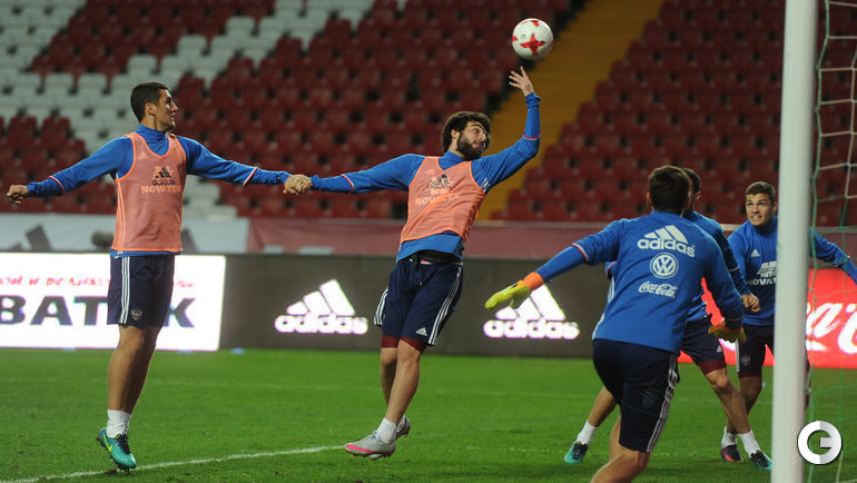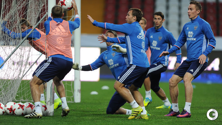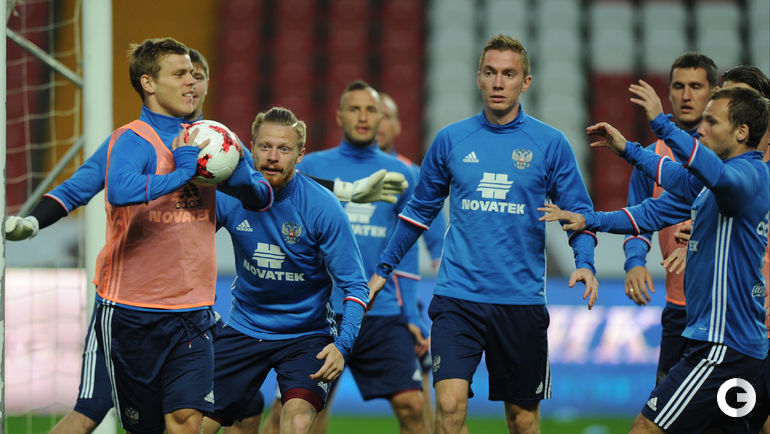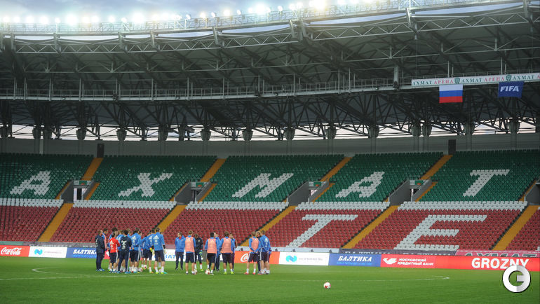Накануне контрольного матча со сборной Румынии национальная команда России провела тренировку на "Ахмат Арене".