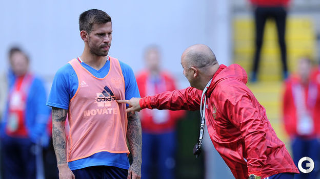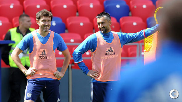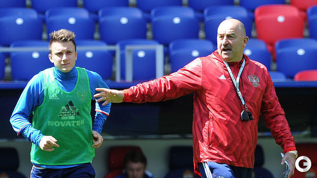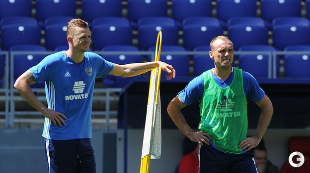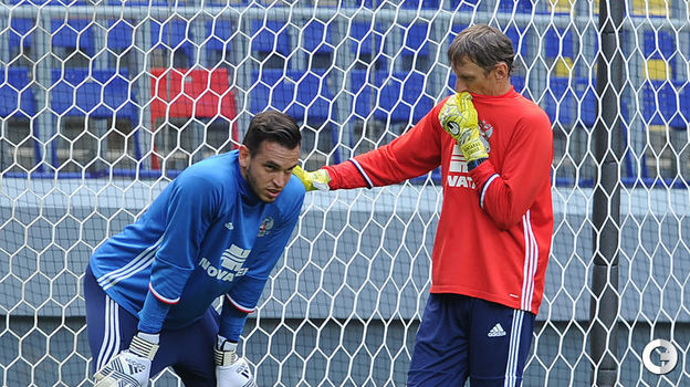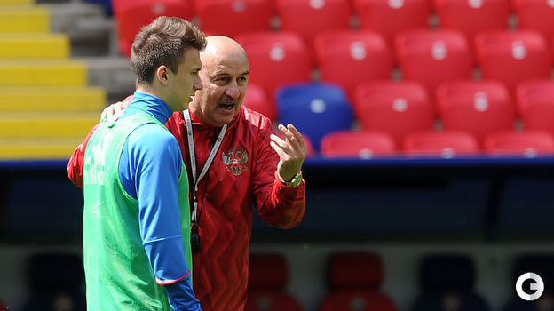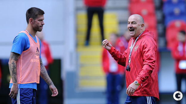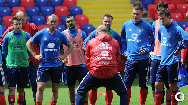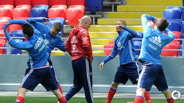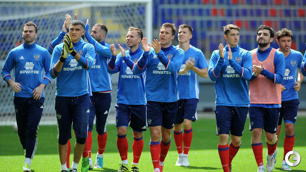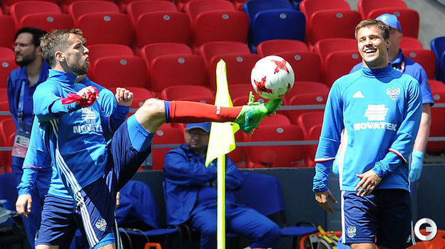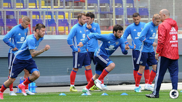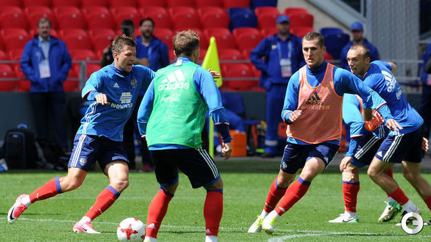 Футболисты сборной России проводят одну из заключительных тренировок перед Кубком конфедераций. Занятие, открытое для посещения болельщиков, проходит на домашнем стадионе ЦСКА. Проход открыт только с трибуны S, к которому стягиваются болельщики. Вход на стадион осуществляется исключено по приглашениям.