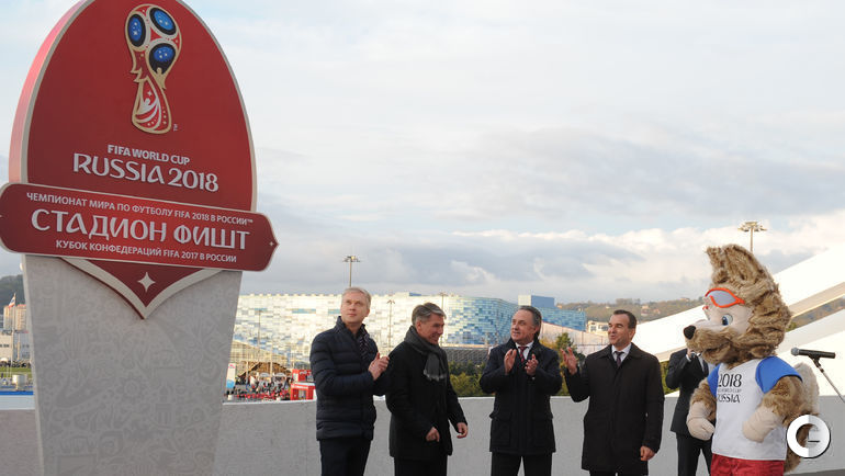 Перед матчем Россия - Бельгия состоялось открытие памятной таблички, символизирующей, что "Стадион Фишт" является официальной ареной для проведения матчей Кубка конфедераций FIFA 2017 и чемпионата мира по футболу FIFA 2018. В церемонии приняли участие президент РФС Виталий Мутко, руководители Оргкомитета "Россия-2018", представители администрации Краснодарского края, а также посол ЧМ-2018, известный актер Сергей Светлаков.