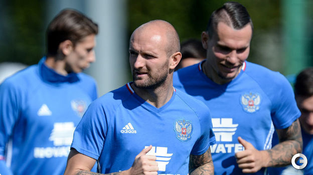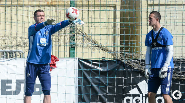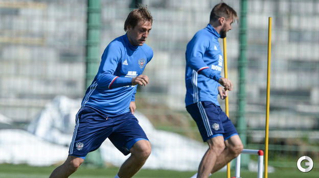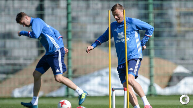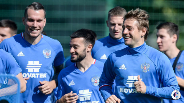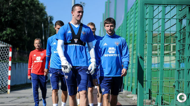 Сборная России провела тренировку на базе в Новогорске.