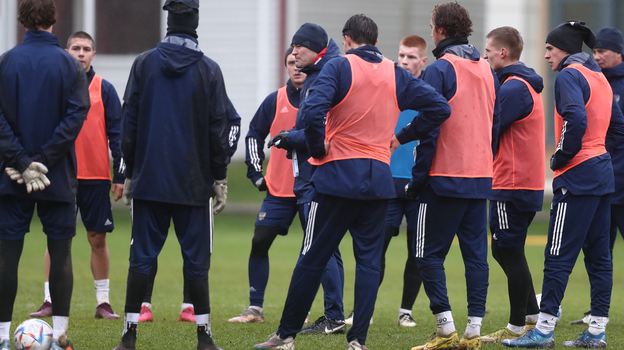 Молодежная сборная России провела открытую тренировку на базе «Новогорск» в Подмосковье. Команда завершила подготовку к товарищеским матчам с командой Белоруссии и минским «Динамо», которые пройдут 15 и 19 ноября в Гомеле и Минске.