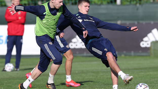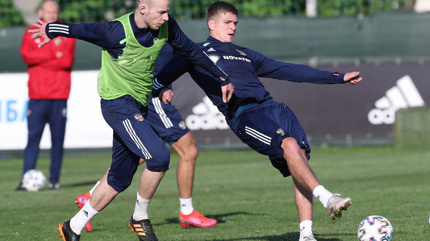 Сборная России провела в Новогорске первую тренировку перед сбором в Австрии в рамках подготовки к чемпионату Европы, который пройдет с 11 июня по 11 июля 2021 года в 11 городах Европы. Россия сыграет в группе В против сборных Дании, Финляндии и Бельгии. В занятие приняли участие 27 футболистов. Алексей Миранчук, Александр Головин и Денис Черышев присоединятся к сборной позже. На тренировке присутствует генеральный секретарь Российского футбольного союза Александр Алаев.