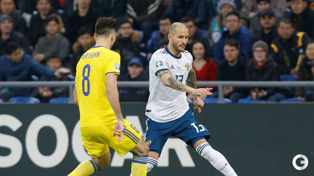 Сборная России в гостевом матче отборочного турнира чемпионата Европы-2020 разгромила Казахстан (4:0). Дубль в первом тайме оформил Денис Черышев, после перерыва отличился Артем Дзюба, четвертый гол оказался в воротах хозяев после удара Магомеда Оздоева и рикошета от ноги защитника.