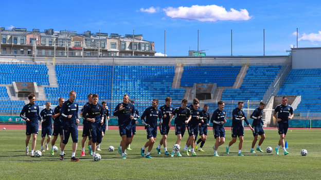 Сборная России провела тренировку на стадионе «Петровский» в Санкт-Петербурге.