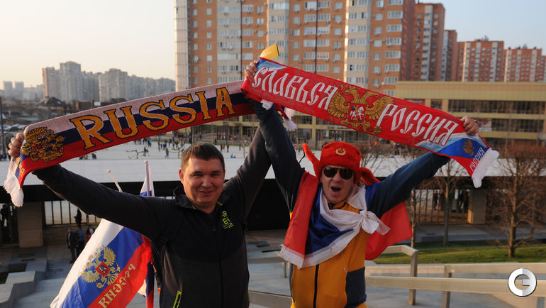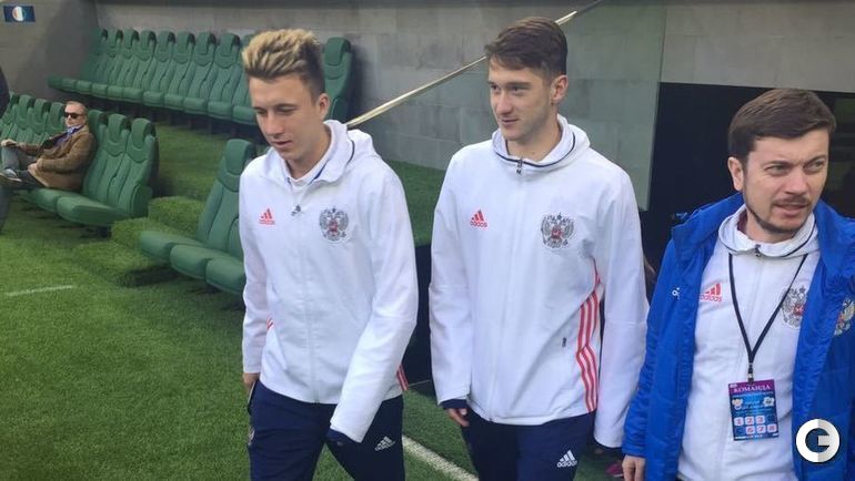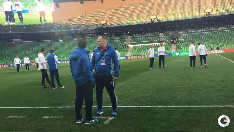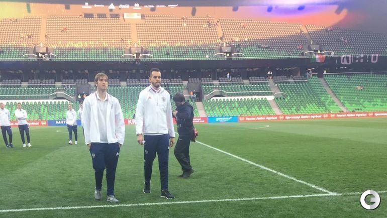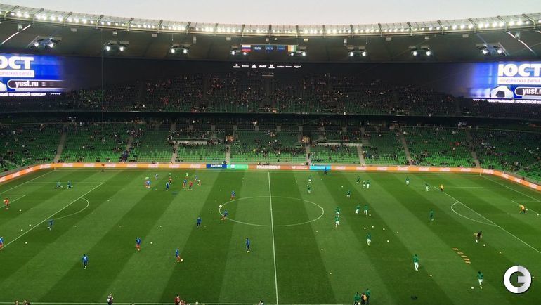 Сборная России перед началом контрольного матча против Кот-д'Ивуара в Краснодаре.