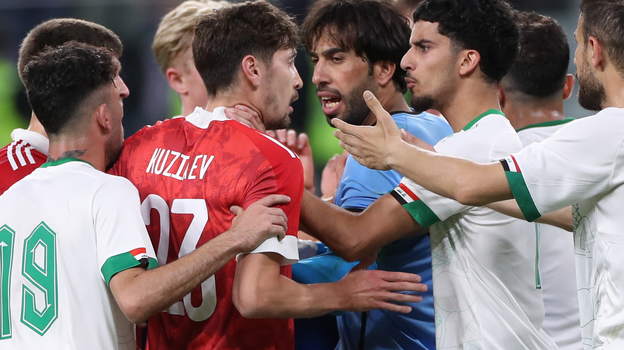 В добавленное ко второму тайму время полузащитник сборной России Далер Кузяев получил красную карточку за агрессивный толчок соперника плечом в грудь.