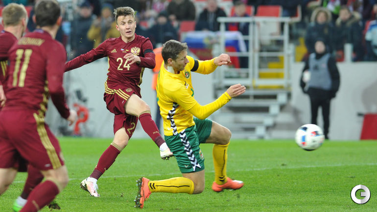 Под началом Леонида Слуцкого сборная встречалась с Литвой (3:0 дома), Францией (2:4 в гостях), Чехией (1:2 на нейтральном поле) и Сербией (1:1 на нейтральном поле), а также с Англией (1:1), Словакией (1:2) и Уэльсом (0:3) на Euro-2016.