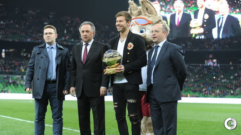Форварду "Краснодара" Федору Смолову перед матчем Россия – Кот-д'Ивуар вручена награда как лучшему футболисту страны 2016 года. Эту премию совместно учредили "Спорт-Экспресс", Российский футбольный союз и Российская футбольная премьер-лига.
