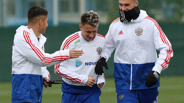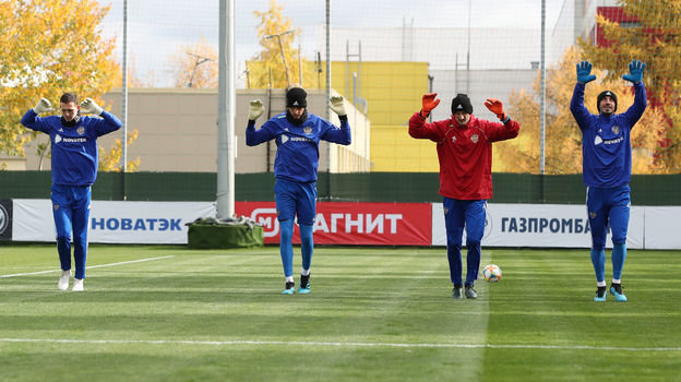 Соболев шутит с Черышевым, Кудряшов — мерзнет, Дзюба обнимает и указывает