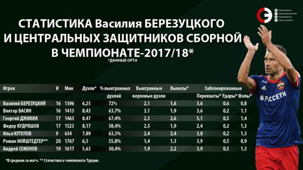 Статистика Березуцкого и центральных защитников сборной в чемпионате-2017/18