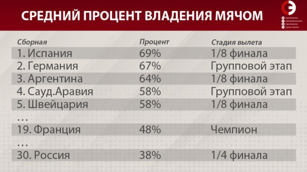 Поразительная статистика. Всем известно, что владение мячом постепенно выходит из моды. Но, судя по данным ФИФА, эта тактическая деталь вообще приобретает негативный оттенок, ведь никто из пятерки любителей размеренного позиционного нападения не попал даже в четвертьфинал!
