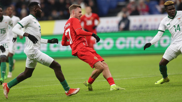 Сборная России оформила очередную разгромную победу — в товарищеском матче разнесла Замбию (5:0) и победила уже в восьмой игре подряд с общим счетом 44:0. Во встрече с африканцами ключевую роль сыграл атакующий полузащитник Максим Глушенков — забил три мяча, которые стали для него дебютными в составе национальной команды.