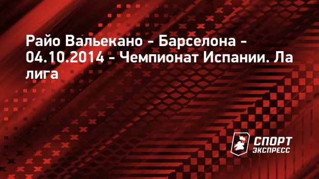 "СЭ" рад приветствовать всех любителей футбола! Здесь вас ждет онлайн-трансляция матча Райо Вальекано (Мадрид) – Барселона (Барселона). Чемпионат Испании. Ла лига, 7-й тур Матч пройдет 4 октября 2014 года на стадионе Вальекас (Мадрид, Испания). Начало - в 20:00 по московскому времени.