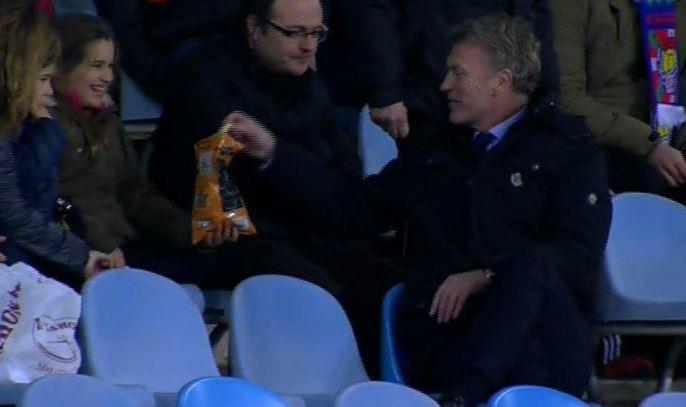 Главный тренер "Реал Сосьедад" Дэвид Мойес, удаленный с поля на 80-й минуте домашнего ответного матча 1/8 финала Кубка Испании против "Вильярреала" (2:2) за излишне эмоциональное поведение, отправился на трибуны, где угостился чипсами, которые ему предложила одна из юных болельщиц. При этом экс-наставник "МЮ" отказался от орешков, предложенных ему другой поклонницей.