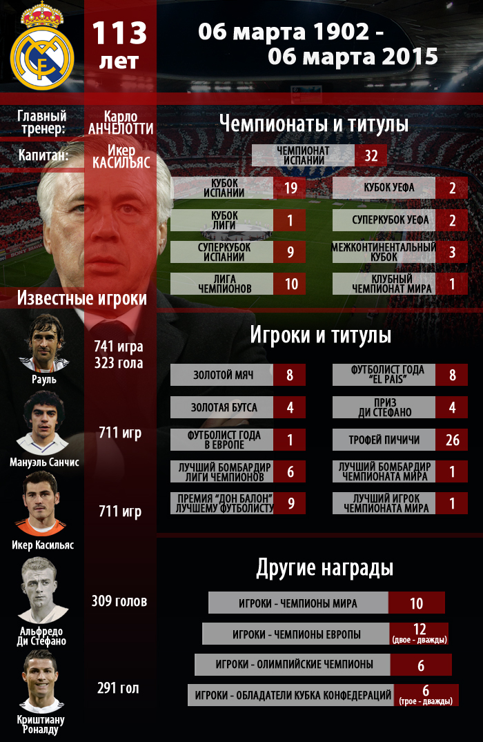 Сегодня "Реал" празднует 113-летие со дня основания клуба. "СЭ" представляет наиболее значимые достижения мадридского клуба и его игроков.