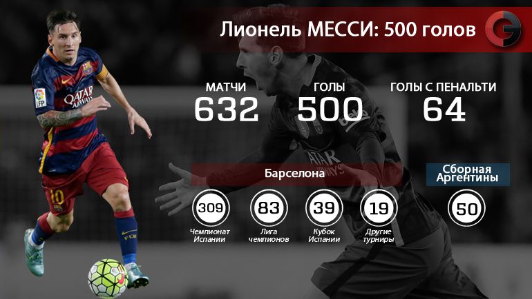 Всего в активе Месси 450 мячей за сине-гарантовых и 50 за сборную Аргентины. Для этого ему потребовалось 632 матча.