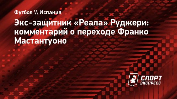 Бывший защитник «Реала» Оскар Руджери прокомментировал переход хавбека «Ривер Плейта» Франко Мастантуоно в мадридский клуб.