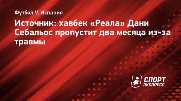 Полузащитнику «Реала» Дани Себальосу диагностировали травму полуперепончатой мышцы с повреждением подколенного сухожилия левой ноги, сообщает пресс-служба мадридцев.